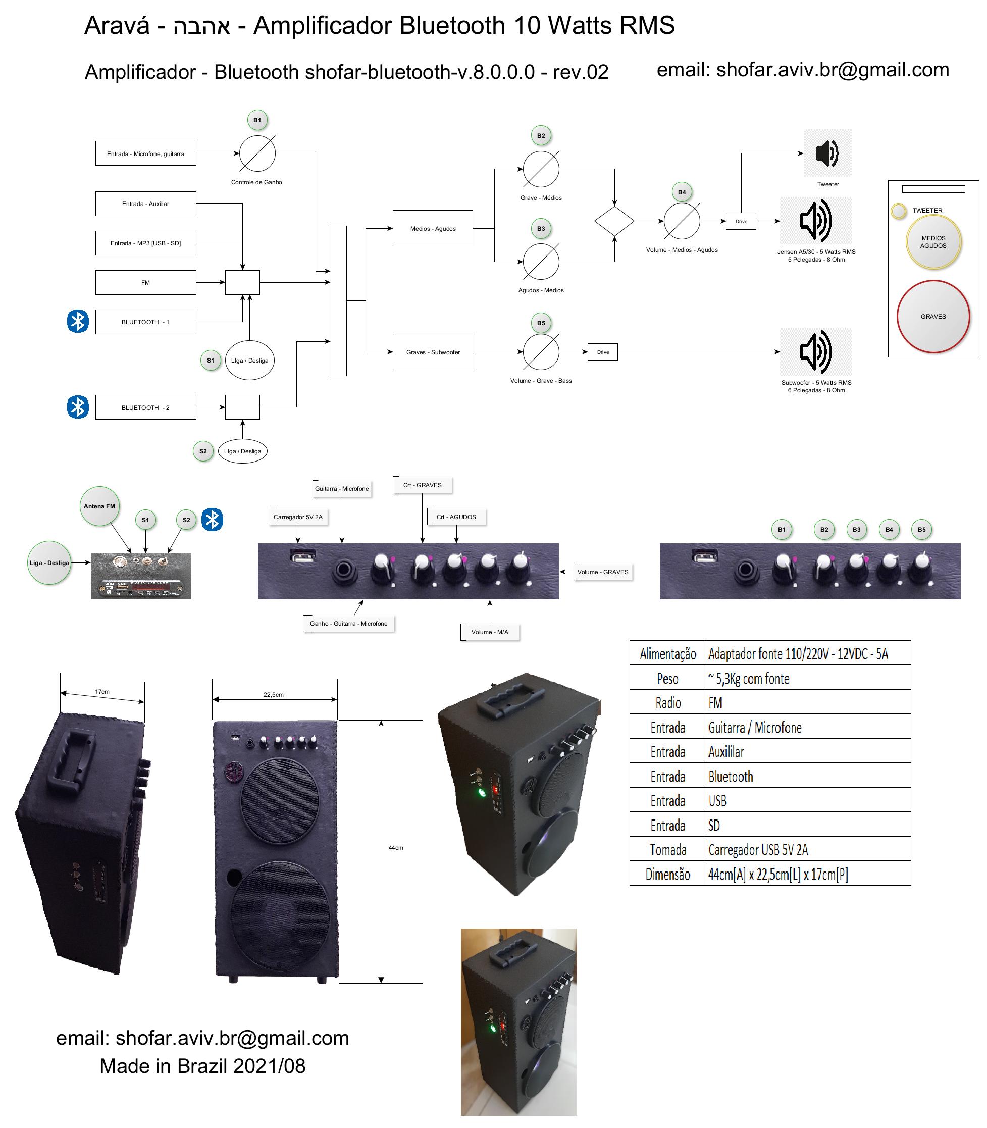 Caixa de som e guitarra bluetooth 10 Watts RMS - Class D